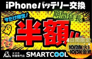 【好評につき延長!!】【10/28(火)~10/31(金)4の日間限定】 iPhoneバッテリー交換半額イベント開催中!!!